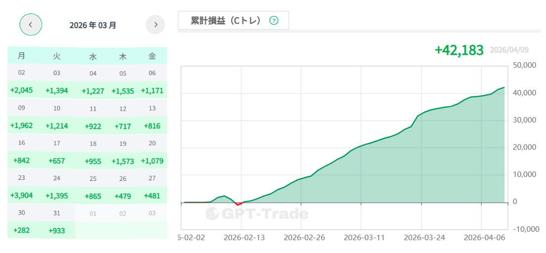 この自動売買プログラムを約2ヵ月間(2026年2月10日~4月10日)、運用した結果はこのような感じになっています