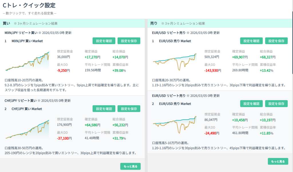 GPT-tradeのホーム画面には、既に設定済みの「Cトレ・クイック設定」というものがあります⇩