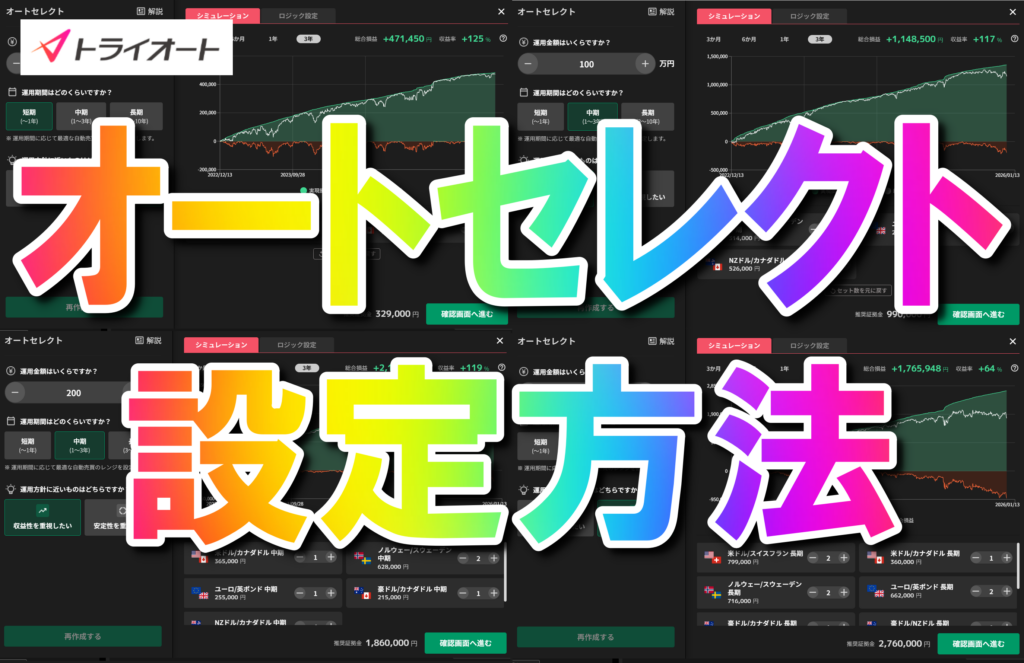 オートセレクトとは、「運用する資金」、「運用する期間」、「運用する方針」の3つを入力するだけで、自動で運用するプログラムを選択してくれる便利な機能です