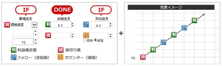 フォロー値とは、決済後の次の新規注文のIFD注文を順張り方向に行うエントリー方法です。